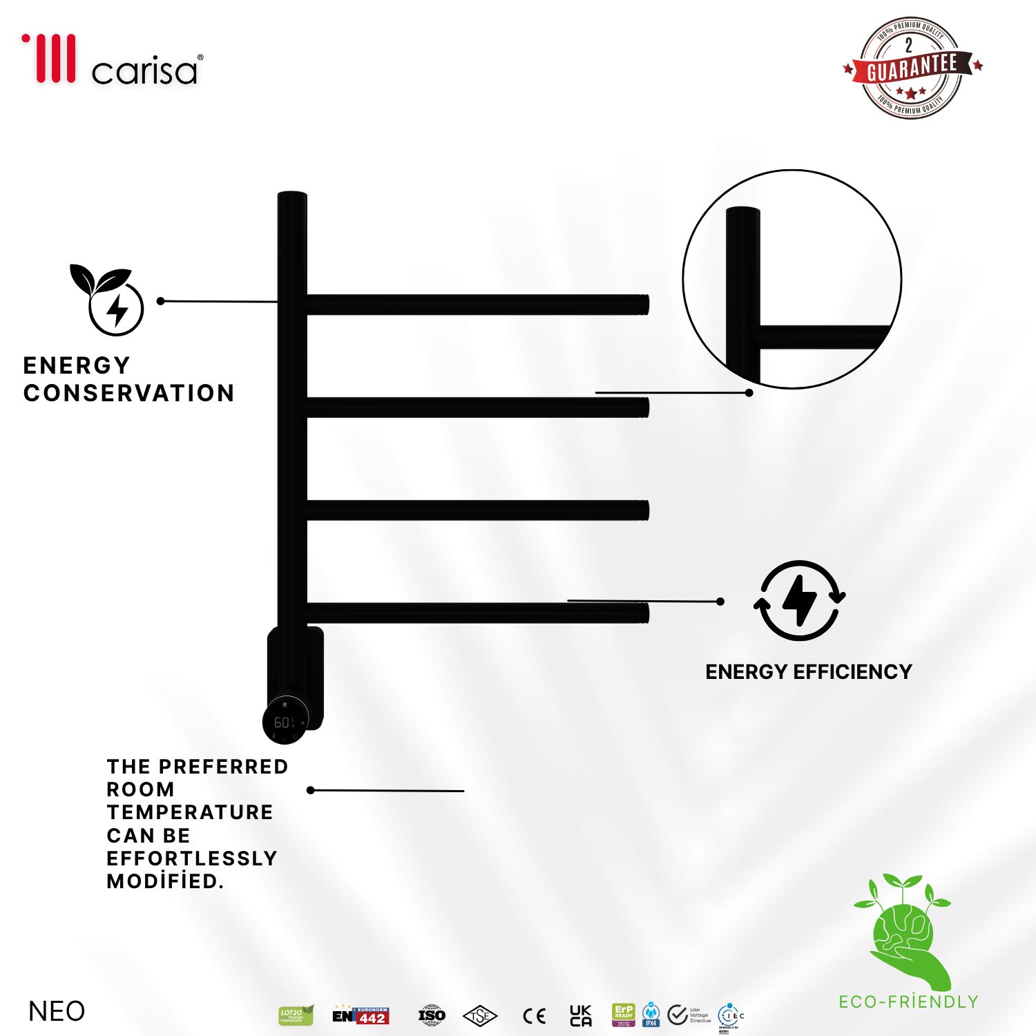 Carisa Neo Brushed Nickel Electric Designer Towel Rail