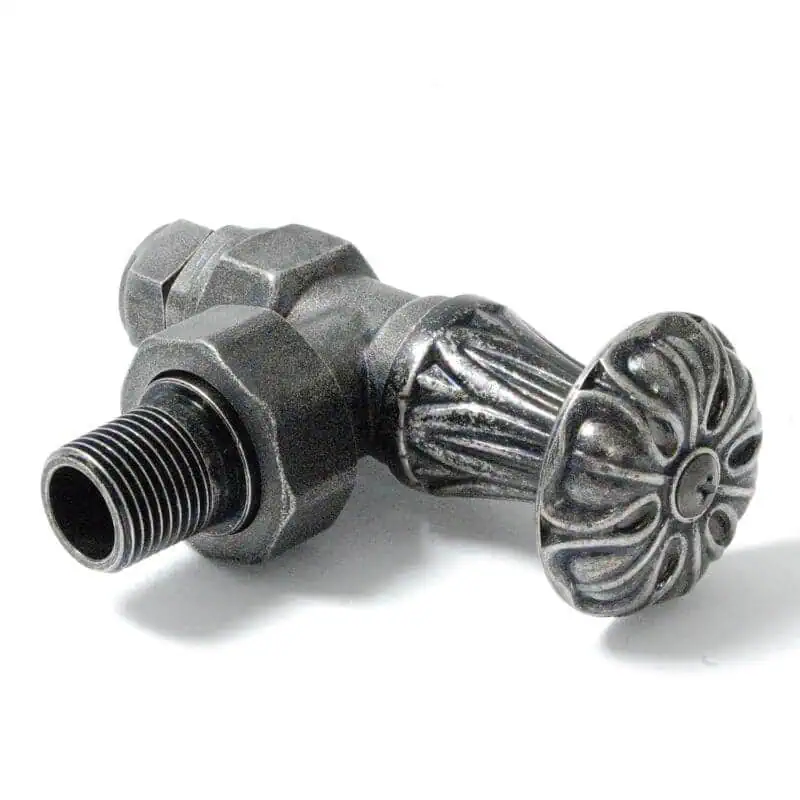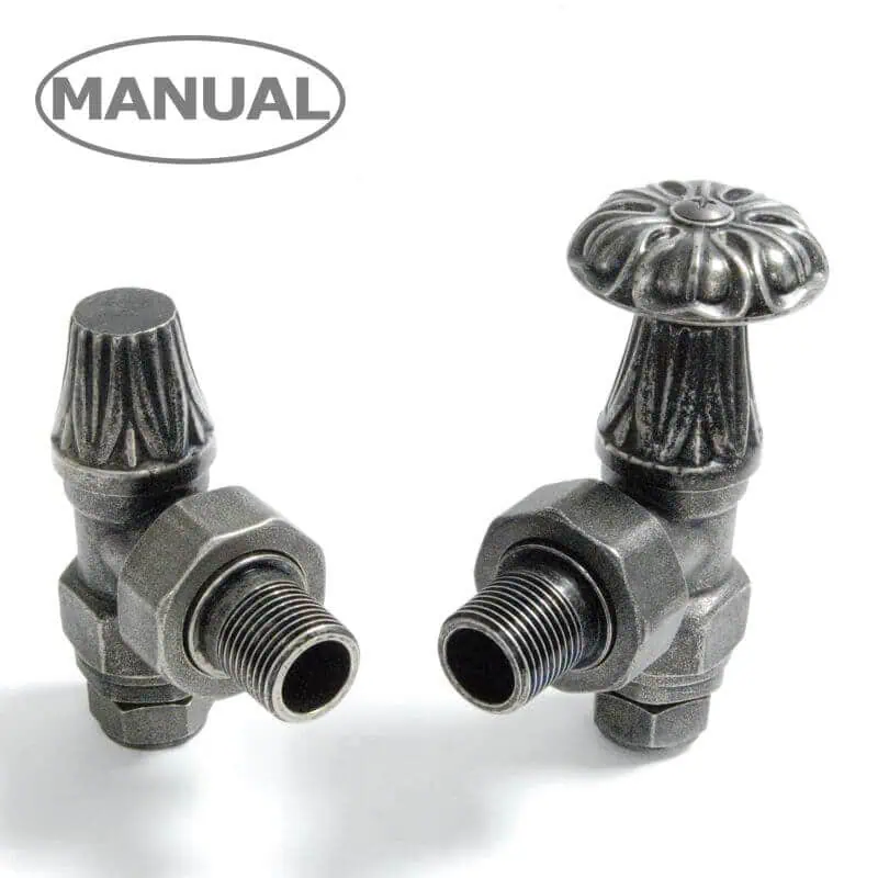 Abbey Radiator Valve and Lock-Shield – Pewter (Angled Manual)