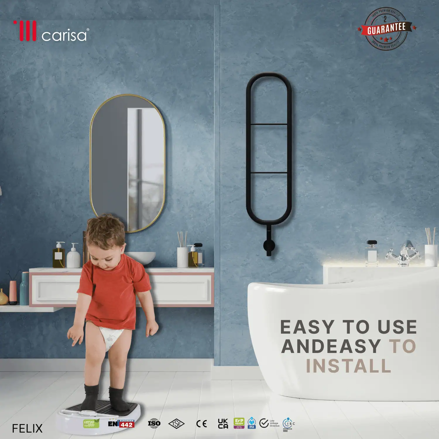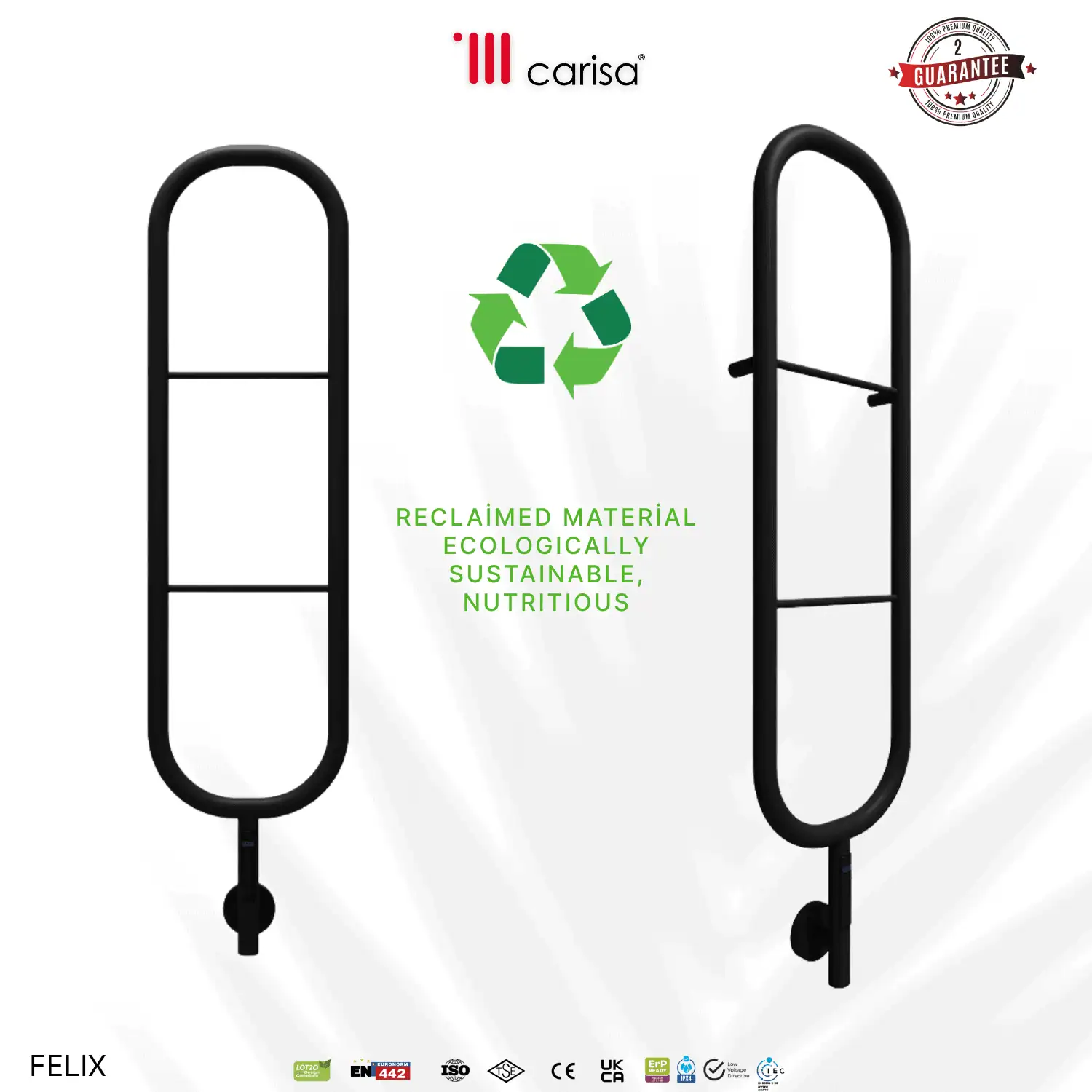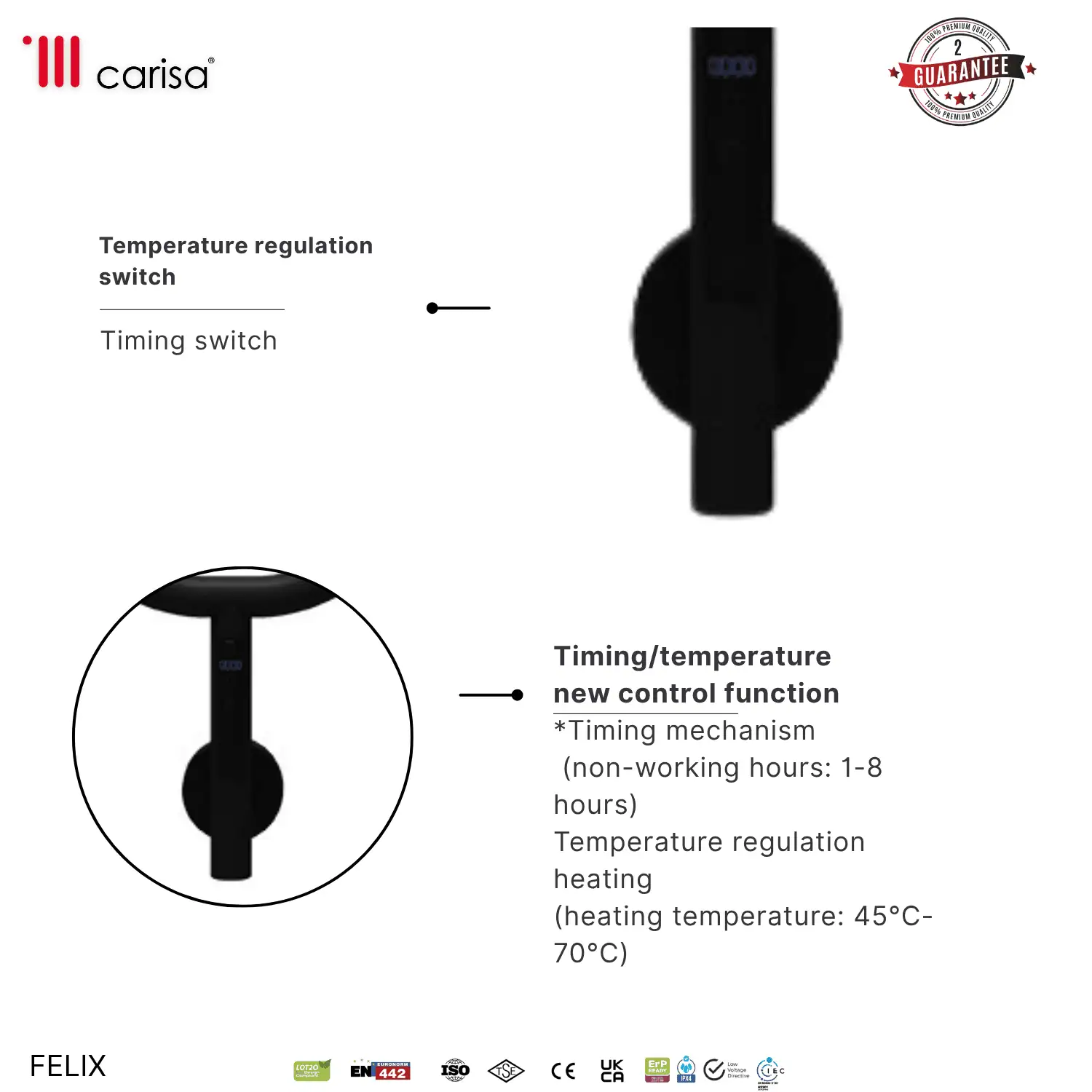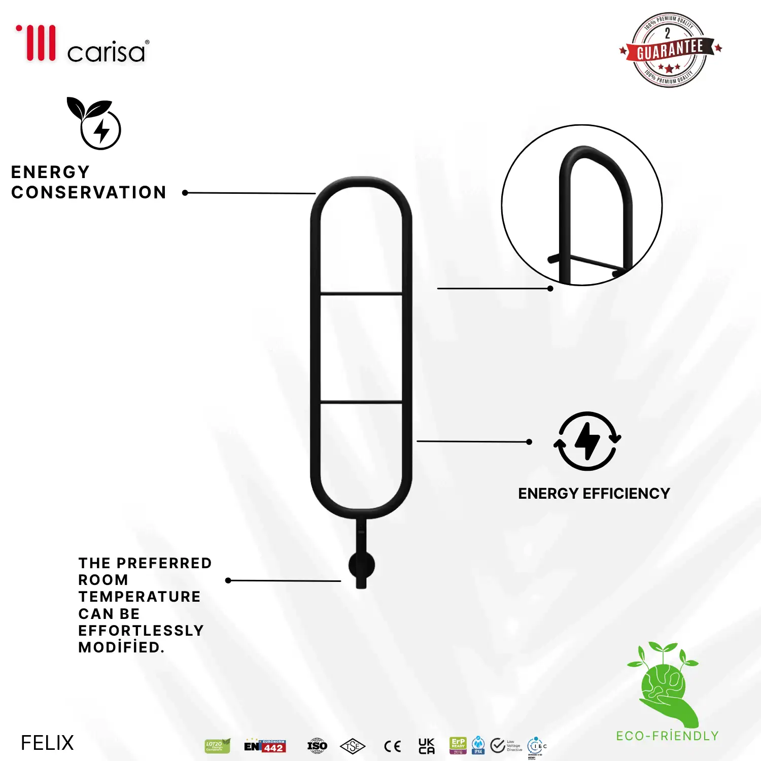 Carisa Felix Matt Black Electric Designer Towel Rail