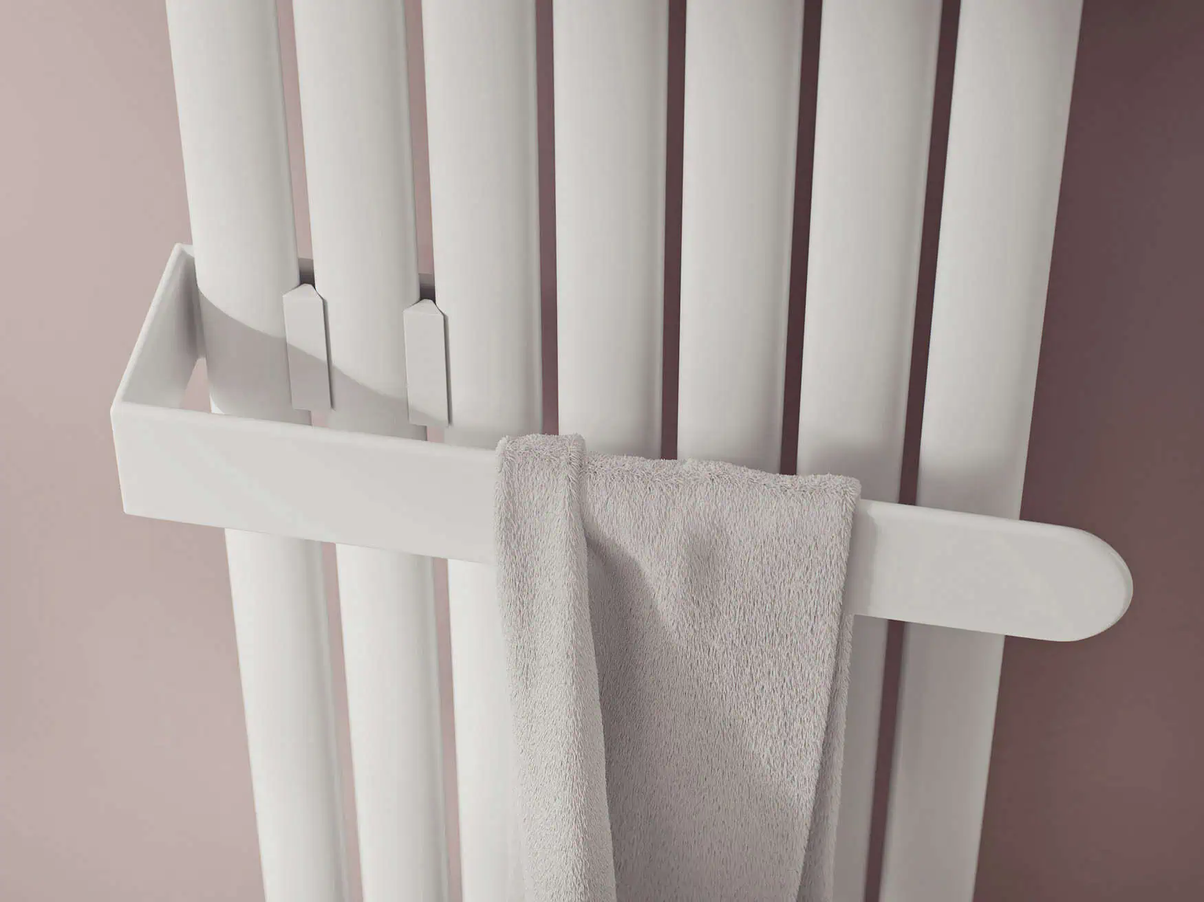 The Nova Towel Rail is custom to fit any of the Nova single range. Ideal to hang your robes and garments on and stunningly coated in a cream white finish. Highly affordable and one on many add-ons from Poshrads. Comes in up to three different sizes.