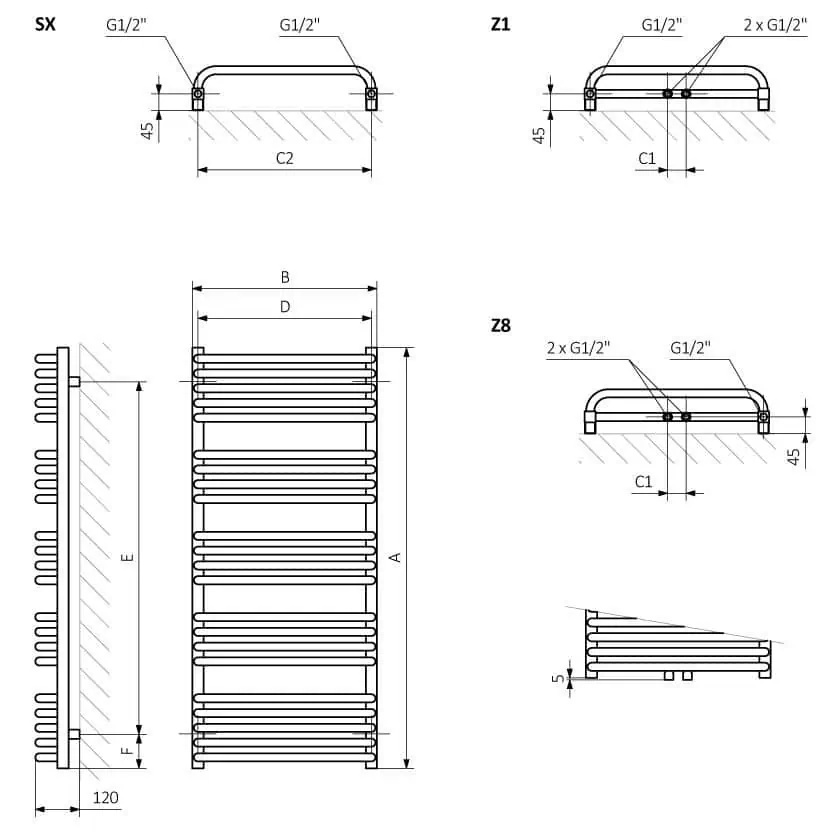 | 1580 h x 500 w | 2706 BTUs | Central Heating | 470mm | Modern Grey | Link |