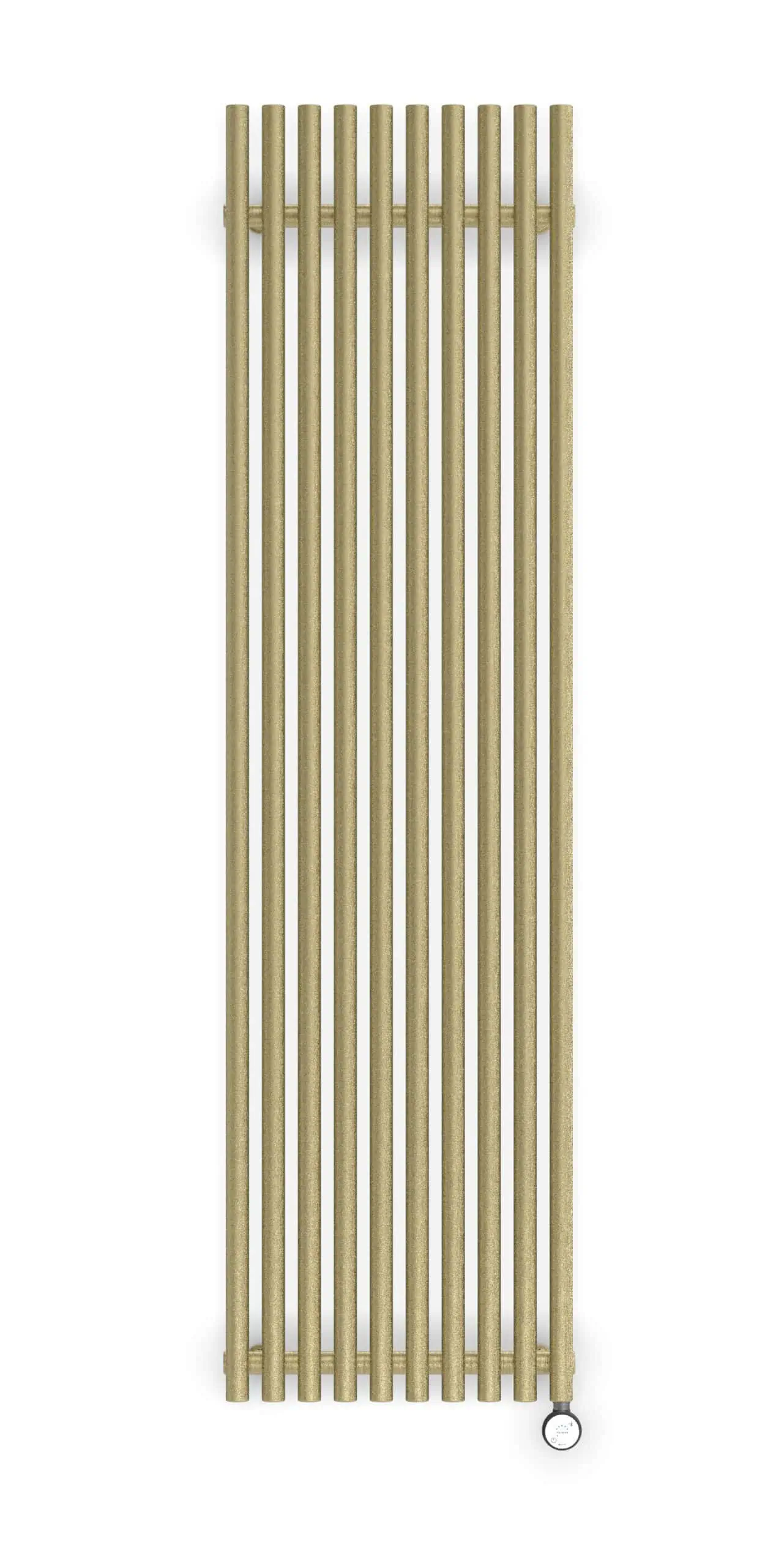 Smooth brushed brass, oil filled, 23mm cylindrical slim bars, electric radiator, supplied pre fitted with the Terma MOA Blue heating element – fully thermostatic (internal or ambient room temperature) and full operational control and 7 day timer via Bluetooth from smartphone/tablet (android/iOS only).