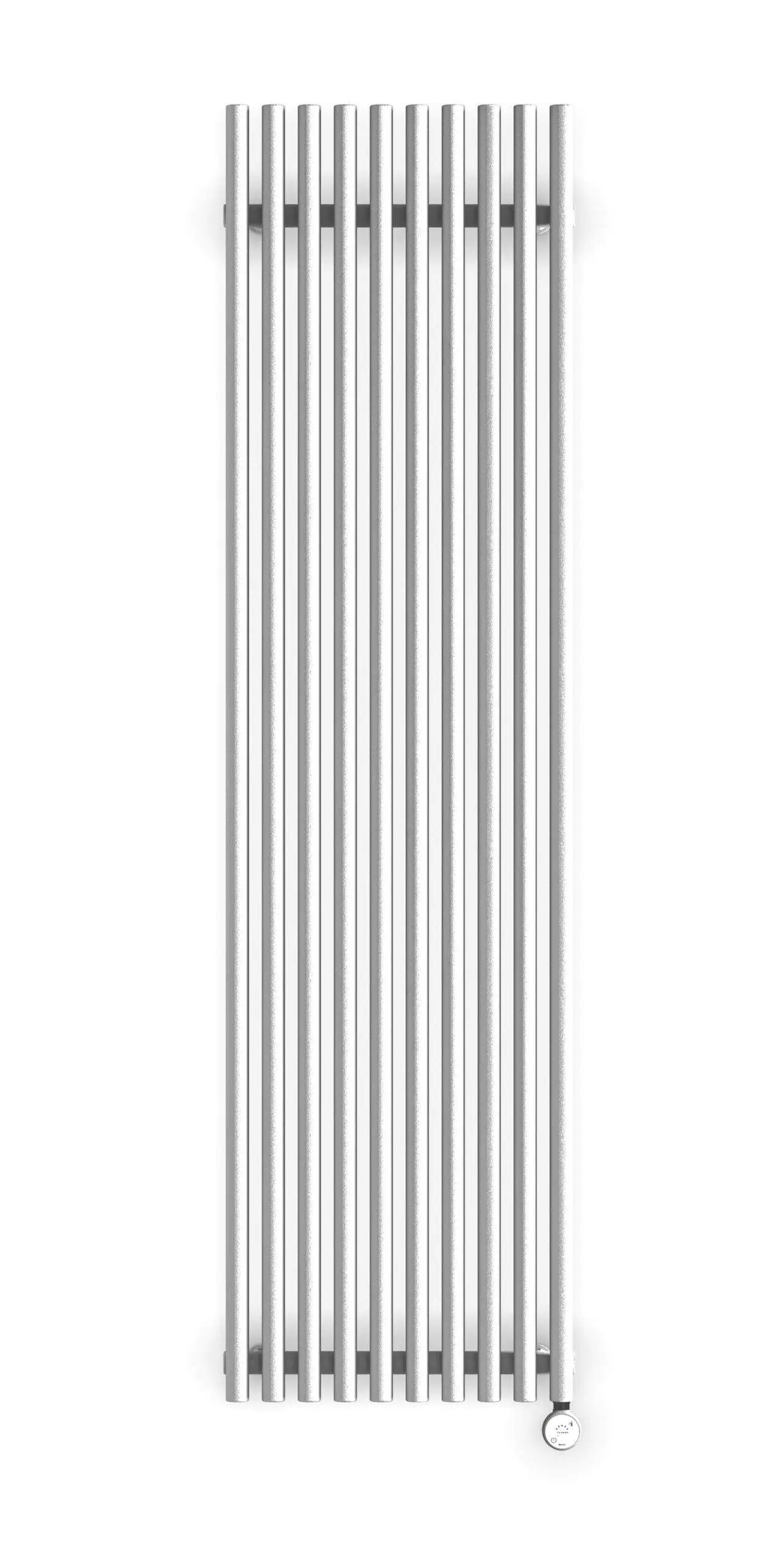 Rough textured grey, oil filled, 23mm cylindrical slim bars, electric radiator, supplied pre fitted with the Terma MOA Blue heating element – fully thermostatic (internal or ambient room temperature) and full operational control and 7 day timer via Bluetooth from smartphone/tablet (android/iOS only).